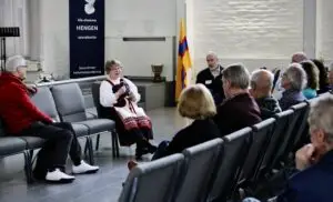 (Kuvassa kääntäjä Larisa Orzajeva sekä mareja kansanpuvuissaan.)